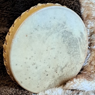 ✨ Details & Materialien Rahmenholz: Buche, 12-eckig – stabil und erdig Trommelhaut: Ziege, mit sichtbaren Spuren des gelebten Lebens Verspannung: braun & weiß & rot – Symbole für Erdung, Leichtigkeit und Begeisterung und einem Hauch von Feuer