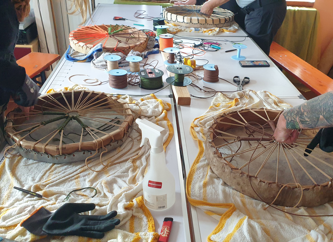 Als "Trommel Geburtshelfer" sind wir 2022 gestartet. Der Ruf als schamanische Trommelbauer hat uns eher aus Zufall - falls man an Zufälle glaubt - ereilt, weil uns eine Freundin gefragt hat, ob wir jemanden kennen, bei dem man eine schamanische Trommel bauen kann. "Ja, bei Matthias kann man einen schamanische Trommel bauen", war damals unsere Antwort.