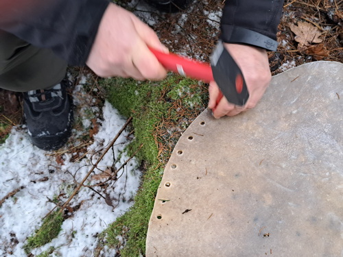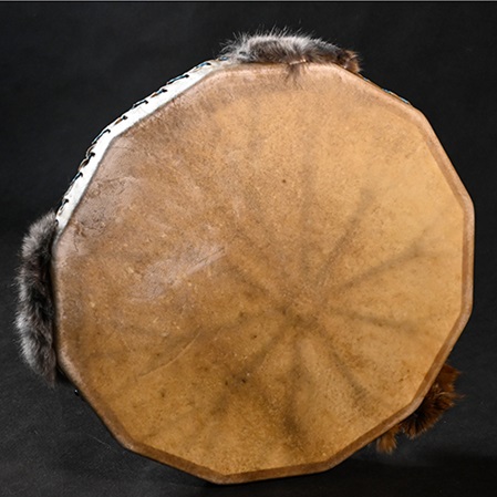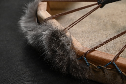 GERLINDE hat ein ziemlich dicke Hirschhaut und hält dadurch Feuchtigkeit deutlich länger stand als viele andere Trommeln. Sie ist perfekt für das Trommeln im Wald oder bei Zeremonien im Freien.