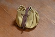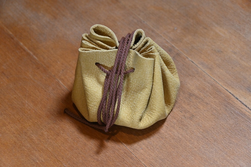 24 Runen aus einem Stock, gelber Lederbeutel, braunes Lederband
