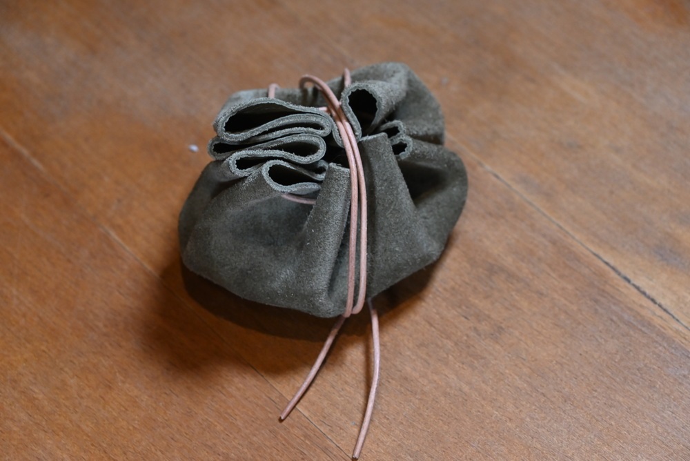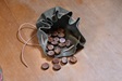 24 Runen aus einem Stock, graublauer Lederbeutel, hellbraunes Lederband