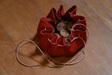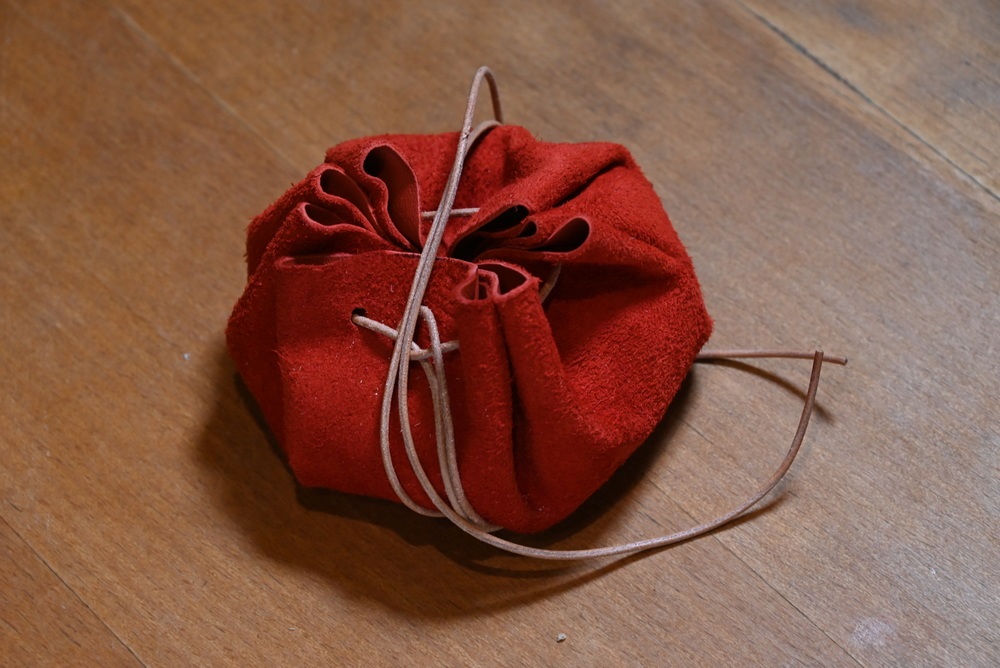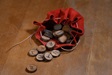 24 Runen aus einem Stock, roter Lederbeutel, hellbraunes Lederband