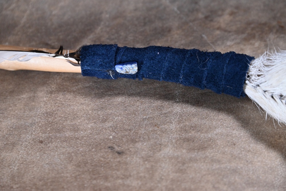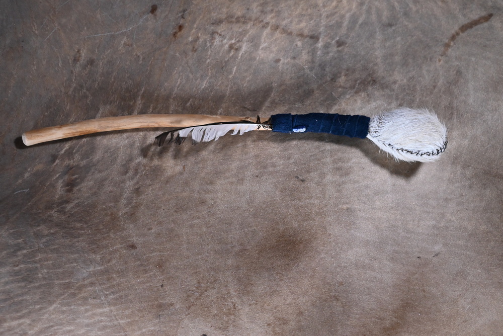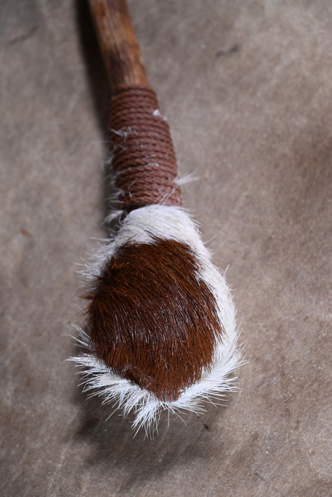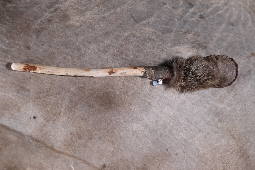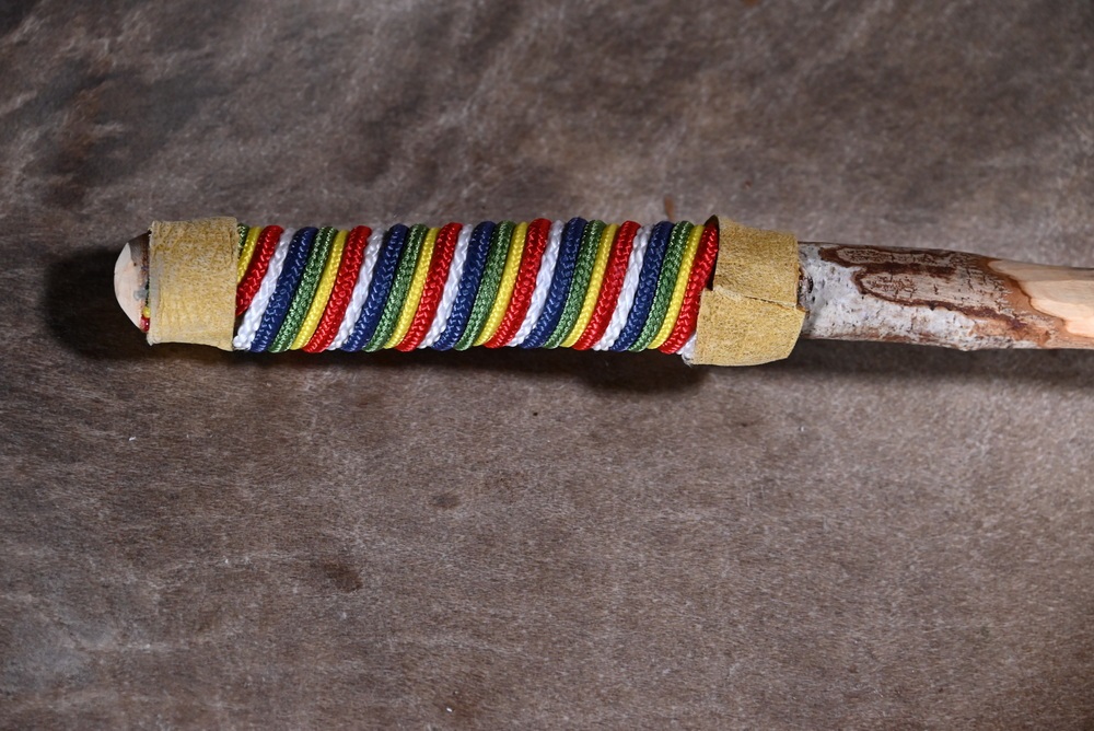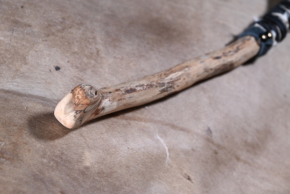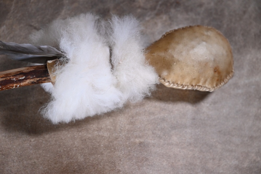Die Häute sind vom Pferd, Hirsch oder Ziege, die Füllungen variieren von Trauben- und Kirschkernen, Holzperlen und verschiedenen Kristallen wie Bergkristall, Amethyst und mehr. Die Stecken sind aus Hölzern, die wir unterwegs gefunden haben und uns angesprochen haben.