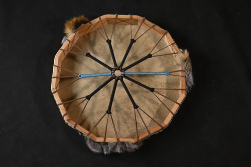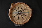 GERLINDE hat ein ziemlich dicke Hirschhaut und hält dadurch Feuchtigkeit deutlich länger stand als viele andere Trommeln. Sie ist perfekt für das Trommeln im Wald oder bei Zeremonien im Freien.